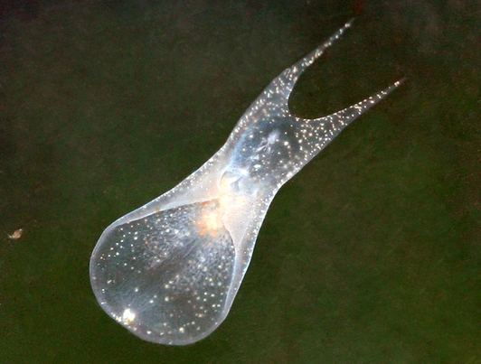 A flat worm (Amphiscolops sp.) on a tanks glass